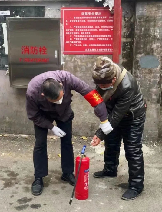 到达该院后,大家重点对院内消防器材、应急照明设施、疏散通道情况进行检查,同时对小区居民用火用电、用气安全、可燃物、易燃物是否清理等问题进行了重点排查,并对电动自行车充电情况进行了专项检查和宣传提醒。安全人员还随机抽查了居民灭火器使用情况,并现场指导居民演练灭火器的使用,向大家发放消防宣传单。