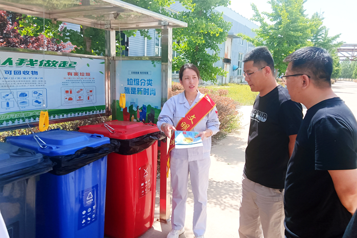华腾化工党总支加强工作统筹,专门组织成立生活垃圾分类入企宣传小组,在推进自身工作开展的同时,专门走进6家入驻单位,进行了生活垃圾分类知识宣讲,发放宣传材料,对生活垃圾分类桶使用情况进行现场检查和指导;通过公司微信公众号大力宣传生活垃圾分类知识;在园区内悬挂宣传条幅,积极营造线上线下多渠道、全覆盖的宣传引导氛围。