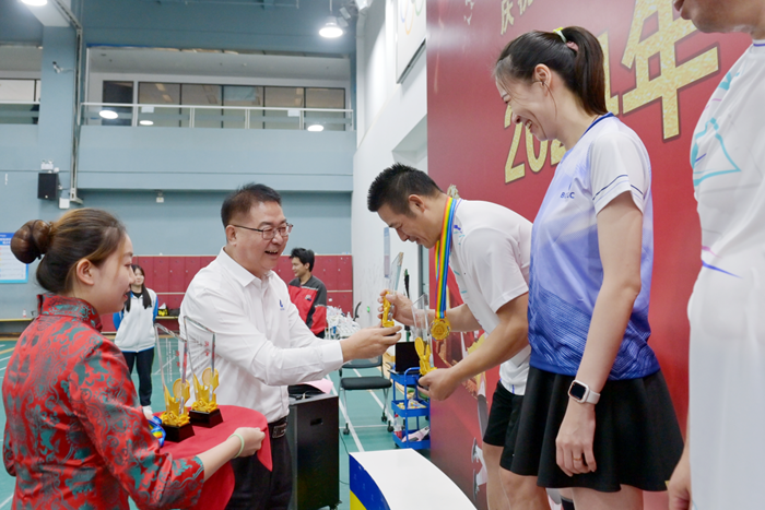 9月24日,万搏网页版2024年“北化杯”羽毛球决赛,在来自各单位的11支代表队历时一周激烈角逐后隆重举行。万搏网页版党委书记、董事长陈宇到场为选手们加油助威,并为获奖选手颁奖。