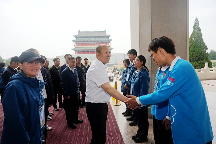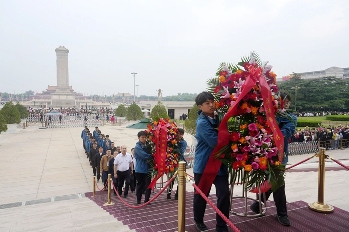 5月23日,万搏网页版党委常委、副总经理韩宝海一行来到毛主席纪念堂,看望慰问开展志愿服务的技师学院青年志愿者。