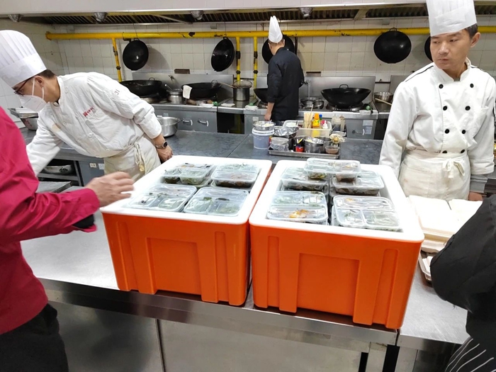 为此,宾馆早在5月下旬就统筹协调厨师人员、配菜人员,并根据每日不同的菜谱,具体安排烹饪时间和顺序。此外,宾馆还对配送路上花费的时长进行具体测算,同时明确要求,办公室和后勤人员要在保证安全卫生的条件下,充实到分装配送一线,最大限度确保每一份盒饭,在中午休息时第一时间送达到用餐人员手中。当宾馆的送餐人员将盒饭配送至比赛现场,看着赛事人员大口大口吃着冒着热气的饭菜时,内心涌起无比的自豪和欣慰。