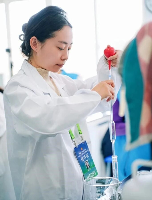 决赛现场,气氛凝重。高手过招,胜负往往就在微末之间,比赛中,意外情况偶有发生,而秦亚宁的工位却呈现出一种奇特的“安静”。她只是微微调整呼吸,目光重新聚焦于眼前的器皿,手上的操作节奏丝毫未乱,沉稳如常。正是这份“遇乱不慌、以稳补快”的定力,让她在激烈的角逐中始终保持高水准发挥,最终将误差牢牢锁死在极小的范围内,也锁定了胜利。荣誉不是终点,而是新的起点。秦亚宁已经将竞赛中学习到的新理念、新方法的“真经”带回班组,和同事们一起研讨,以提升实验整体效率和数据的可靠性。“比赛是个人技能的拔高,但最终价值,要体现在为产品质量保驾护航中。”秦亚宁自信地笑着……