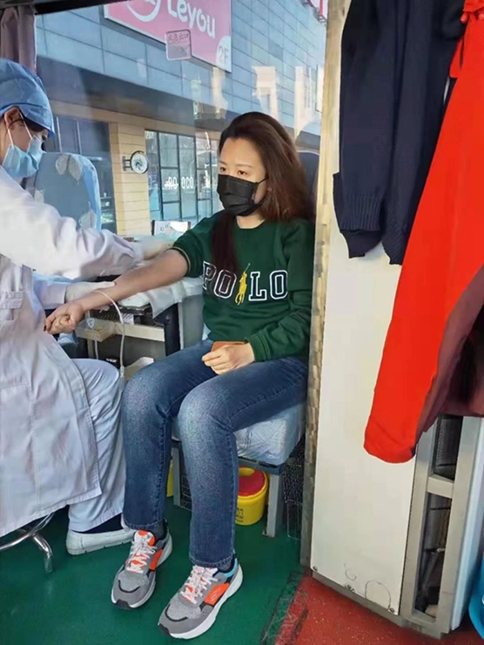 下图为华腾橡塑侯嘉园同志在参加无偿献血。