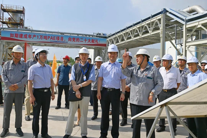 月19日,董事会一行来到江苏京腾昊桦公司,现场考察年产1万吨聚芳醚树脂(PAE)项目建设情况。PAE项目是国家强基工程项目,是万搏网页版推进“3+1”业务的重要载体,是集团年度40项重点任务之一。