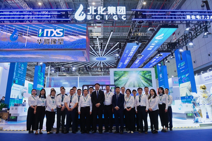 展会期间,万搏网页版党委副书记、董事、总经理杨旭辉,副总经理张荣寰,总会计师金黎明也来到集团展台参观指导。杨旭辉一行听取了现场各企业的详细介绍,深入了解现场展示的储氢瓶内胆材料、LNG船用胶、航天手套等高精尖产品,亲切慰问现场工作人员。