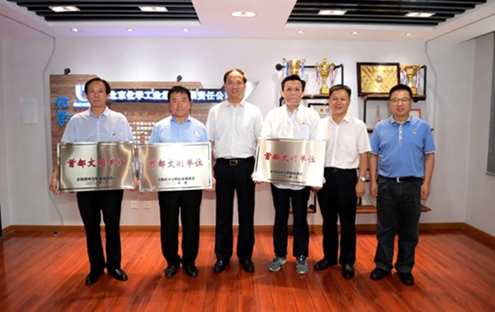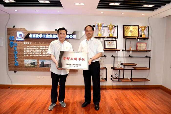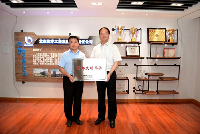 9月1日,万搏网页版党委书记、董事长王国华向获首都文明单位称号的3个单位授牌,党委副书记吴瑞峰,总经理助理、华腾拓展公司党总支书记李泳,化研院党总支书记杨传忠,华腾天海公司党总支书记崔志宏参加授牌仪式。