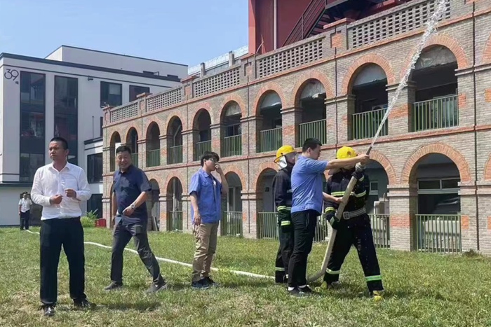 为贯彻落实万搏网页版安全生产月有关工作部署,推动全员参与火灾防控、壮大群防群治力量,有效提升园区消防应急协同处置能力, 6月16日上午,华腾易心堂文创园消防培训、演练活动在园区公寓前广场举行。此次活动由华腾丹陛华和易心堂公司共同组织,参加人员包括房地产公司、华腾丹陛华、易心堂公司、荣源物业公司以及园区入驻企业代表等共计70余人。